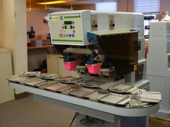 Keywords: Two Color Pad Printing Machine with 11 Station Carousel (new).jpg en Pad Printing Picture Own C andersson 2009-07-24 Printing color systems Pad printing