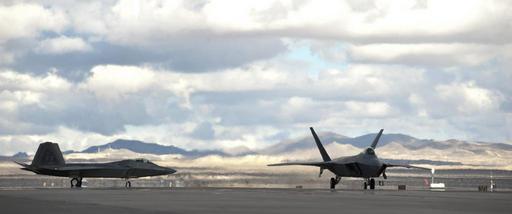 Keywords: Two F-22 Raptors taxi flight air force runway