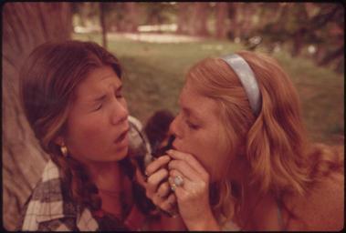 | Keywords: TWO GIRLS SMOKING POT DURING AN OUTING IN CEDAR WOODS NEAR LEAKEY, TEXAS. (TAKEN WITH PERMISSION). ONE OF NINE... - NARA - 554909.jpg Scope and content General notes 554909 Local identifier 412-DA-12457 Environmental Protection Agency 12/02/1970 - NARA-Author St Gil Marc 1924-1992 Photographer 8464473 <br /> Texas United States North and Central America state 4192114 30 -100 <br /> Still Picture Records Section Special Media Archives Services Division NWCS-S National Archives at College Park 8601 Adelphi Road College Park MD 20740-6001 05/1973 Record group Record Group 412 Records of the Environmental Protection Agency 1944 - 2006 Record group ARC 708 DOCUMERICA The Environmental Protection Agency's Program to Photographically Document Subjects of Environmental Concern compiled 1972 - 1977 Series ARC 542493 File unit File unit ARC Variant control numbers Agency-Assigned Identifier 208/37/012457<br /> NAIL Control Number NWDNS-412-DA-12457 Other versions <gallery> File TWO_GIRLS_SMOKING_POT_DURING_AN_OUTING_IN_CEDAR_WOODS_NEAR_LEAKEY _TEXAS _ TAKEN_WITH_PERMISSION _ONE_OF_NINE _-_NARA_-_554909 tif tif File TWO_GIRLS_SMOKING_POT_DURING_AN_OUTING_IN_CEDAR_WOODS_NEAR_LEAKEY _TEXAS _ TAKEN_WITH_PERMISSION _ONE_OF_NINE _-_NARA_-_554909 jpg jpg </gallery> NARA-cooperation PD-USGov Cannabis in Real County Texas Cannabis smoking 1973 in Texas Coughing Fashion in 1973 DOCUMERICA |