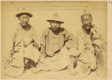 | Keywords: Two Government Workers, in Official Summer Straw Hats, Sitting with an Old Man. China, 1874-75 WDL1926.png Artwork ru Боя ский Адольф- иколай Э азмович fr Boiarskii Adolf-Nikolay Erazmovich en Boiarskii Adolf-Nikolay Erazmovich zh 阿道夫 伊拉莫维奇 鲍 尔斯基 pt Boiarskii Adolf-Nikolay Erazmovich ar أدولف-نيكولاي إرازموفيتش بويارسكي es Boiarskii Adolf-Nikolay Erazmovich ru Двое госуда ственных служащих в летних служебных соломенных шляпах сидят ядом с пожилым мужчиной Китай 1874 1875 гг fr Deux fonctionnaires portant le chapeau de paille officiel d'été assis avec un vieil homme Chine 1874-1875 en Two Government Workers in Official Summer Straw Hats Sitting with an Old Man China 1874-75 zh 两个头戴夏季顶戴 与 位 起的官员 中国,1874-1875 年 pt Dois funcionários do governo com chapéus de palha oficiais de verão sentados com um velho China 1874-1875 ar عاملان حكوميان، يرتديان قبعات الصيف الرسمية المصنوعة من القش، يجلسان بصحبة رجل عجوز الصين 1874-1875 ru В 1874 1875 гг оссийское п авительство нап авило в Китай учено-то говую экспедицию с целью поиска новых сухопутных ма ш утов к китайскому ынку оценок возможностей для более активной то говли и для асположений консульств и фаб ик а также сбо а инфо мации о Дунганском восстании бушевавшем в то в емя в западных айонах Китая Экспедиция уководителем кото ой был полковник Гене ального штаба Ю А Сосновский состояла из девяти человек капитана атусовского топог афа докто а Павла Яковлевича Пясецкого научного сот удника пе еводчиков с усского и китайского языков т оих казаков и фотог афа экспедиции Адольфа Э азмовича Боя ского Экспедиция отп авилась из Санкт-Пете бу га в Шанхай че ез Улан-Бато онголия Пекин и Тяньцзинь и затем последовала по ма ш уту вдоль еки Янцзы по Великому шелковому пути п оходя че ез оазис Хами к озе у Зайсан об атно в Россию Боя ский сделал около 200 снимков кото ые легли в основу уникальных мате иалов для изучения Китая того в емени Большая часть фотог афий вошла в этот альбом кото ый позже стал частью коллекции Те езы К истины а ии соб анной импе ато ом Б азилии Пед у II и пе еданной им ациональной библиотеке Б азилии <br>Китайцы; Госуда ственные служащие; Память ми а; ужчины; По т етные фотог афии; Династия Цин 1644-1911 гг fr En 1874-1875 le gouvernement russe organisa une mission commerciale et de recherche en Chine Cette mission avait pour objectif de trouver de nouvelles routes terrestres vers le marché chinois d'étudier les perspectives d'une expansion commerciale de rechercher des sites pour l'installation de consulats et d'usines et de recueillir des informations sur la révolte de Dungan qui faisait alors rage dans les provinces de la Chine occidentale Composée de 9 hommes et dirigée par le lieutenant-colonel Iulian A Sosnovskii de l'état-major général de l'armée cette mission comprenait également un topographe le capitaine Matusovskii un responsable scientifique le Dr Pavel Iakovlevich Piasetskii des interprètes chinois et russes trois sous-officiers cosaques et le photographe de la mission Adolf Erazmovich Boiarskii La mission se déroula de Saint-Pétersbourg à Shanghai en passant par Oulan-Bator Mongolie Pékin et Tianjin Elle longea ensuite le fleuve Yangtsé et suivit la grande Route de la soie à travers l'oasis Hami et jusqu'au lac Zaysan de retour en Russie Adolf Erazmovich Boiarskii prit quelque 200 photographies ce qui constitue une source unique pour l'étude de la Chine de cette période La plupart des photographies prises durant cette mission apparaissent dans cet album lequel rejoignit par la suite la collection Thereza Christina Maria rassemblée par l'empereur Pierre II du Brésil qui en fit don à la Bibliothèque nationale du Brésil <br>Chinois; Fonctionnaires; Mémoire du monde; Hommes; Portraits photographiques; Dynastie Qing 1644-1911 en In 1874-75 the Russian government sent a research and trading mission to China to seek out new overland routes to the Chinese market report on prospects for increased commerce and locations for consulates and factories and gather information about the Dungan Revolt then raging in parts of western China Led by Lieutenant Colonel Iulian A Sosnovskii of the army General Staff the nine-man mission included a topographer Captain Matusovskii; a scientific officer Dr Pavel Iakovlevich Piasetskii; Chinese and Russian interpreters; three non-commissioned Cossack soldiers; and the mission photographer Adolf Erazmovich Boiarskii The mission proceeded from Saint Petersburg to Shanghai via Ulan Bator Mongolia Beijing and Tianjin and then followed a route along the Yangtze River along the Great Silk Road through the Hami oasis to Lake Zaysan back to Russia Boiarskii took some 200 photographs which constitute a unique r