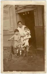 | Keywords: trike tricycle spain mother children public domain publicdomain people monochrome Another Barcelona find. Something about this caught my eye. I guess it's the trike, which is rather too large for the little girl posed on it, and also has what I can only think is a rather cobbled together repair at the front. I suspect it's about 1920 or so, though the trike has solid tyres suggesting it may already be quite old by the time this photo was taken. The reverse has a simple divided back, the words Tarjeta Postal, and the initials of the printer 'I F A G' in a cross. Presumed to be Spanish, and quite possibly Barcelona. The highly ornamental facade of the building, and the end of the word ....CTRICA (electrica?) intrigue me, though I don't suppose we'll ever find where this was taken. Another Barcelona find. Something about this caught my eye. I guess it's the trike, which is rather too large for the little girl posed on it, and also has what I can only think is a rather cobbled together repair at the front. I suspect it's about 1920 or so, though the trike has solid tyres suggesting it may already be quite old by the time this photo was taken. The reverse has a simple divided back, the words Tarjeta Postal, and the initials of the printer 'I F A G' in a cross. Presumed to be Spanish, and quite possibly Barcelona. The highly ornamental facade of the building, and the end of the word ....CTRICA (electrica?) intrigue me, though I don't suppose we'll ever find where this was taken. |