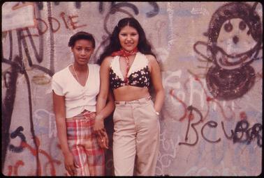 | Keywords: TWO LATIN GIRLS POSE IN FRONT OF A WALL OF GRAFFITI IN LYNCH PARK IN BROOKLYN, NEW YORK CITY. THIS PROJECT IS A... - NARA - 555896.jpg Scope and content General notes 555896 Local identifier 412-DA-13444 Environmental Protection Agency 12/02/1970 - NARA-Author Lyon Danny 1942- Photographer 1709309 <br /> Brooklyn New York City New York state United States North and Central America borough 4204864 40 683 -73 967 <br /> Still Picture Records Section Special Media Archives Services Division NWCS-S National Archives at College Park 8601 Adelphi Road College Park MD 20740-6001 06/1974 Record group Record Group 412 Records of the Environmental Protection Agency 1944 - 2006 Record group ARC 708 DOCUMERICA The Environmental Protection Agency's Program to Photographically Document Subjects of Environmental Concern compiled 1972 - 1977 Series ARC 542493 File unit File unit ARC Variant control numbers Agency-Assigned Identifier 225/04/013444<br /> NAIL Control Number NWDNS-412-DA-13444 Other versions <gallery> File TWO_LATIN_GIRLS_POSE_IN_FRONT_OF_A_WALL_OF_GRAFFITI_IN_LYNCH_PARK_IN_BROOKLYN _NEW_YORK_CITY _THIS_PROJECT_IS_A _-_NARA_-_555896 tif tif File TWO_LATIN_GIRLS_POSE_IN_FRONT_OF_A_WALL_OF_GRAFFITI_IN_LYNCH_PARK_IN_BROOKLYN _NEW_YORK_CITY _THIS_PROJECT_IS_A _-_NARA_-_555896 jpg jpg </gallery> NARA-cooperation PD-USGov 1974 in New York City People in Brooklyn Fashion in 1974 Graffiti in Brooklyn New York City Standing women |