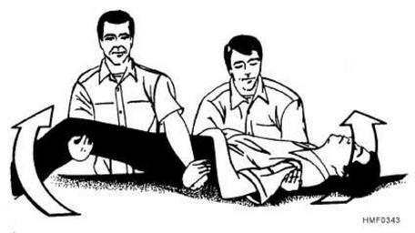| Keywords: Two-person arm carry.jpg Diagram showing how to use the two-person arm carry to remove an injured person from a dangerous situation Taken from the U S Navy Training Manual 14295 Hospital Corpsman Revised Edition U S Navy PD-USGov-Military-Navy BadJPEG First aid diagrams Patient transport |