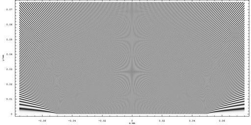 | Keywords: Two Slit Interference, 800nm wl, 0.1mm d, close up average.png Density plot of two slit inteference of 800nm light thtrough slits 0 1mm apart The equation is <math>u x y t \sin \left k \sqrt \left x-\frac d 2 \right 2 + y 2 \right + \sin \left k \sqrt \left x+\frac d 2 \right 2 + y 2 \right </math> where d is the slit separations k is the wavenumber 2Ï /λ x is the distance from the origin on the line containing the slits y is the distance from the plane contining the slits This is a plot of the average absolute value of the wave over one full cycle taken by sampling the wave at 40 times Own Mathematica 2007-06-13 Inductiveload Mathematica Code border solid 2px BF0C1D; ; valign top ; width 75 align center 50px Please be aware that at the time of uploading 19 08 17 June 2007 UTC this code may take a significant amount of time to execute on a consumer-level computer 50px <pre> ux_ y_ z_ t_ Sink Sqrty 2 + x + d/2 2 + z 2 + ω t + Sink Sqrty 2 + x - d/2 2 + z 2 + ω t; farav DensityPlot x xmm/1000; y ymm/1000; Sum Absux y 0 n n 0 Ï„ Ï„/40 /40 xmm -0 075 0 075 ymm 0 0 075 PlotPoints -> 1000 AspectRatio -> 0 5 ImageSize -> 1000 Mesh -> False FrameLabel -> y/mm z/mm </pre> Double-slit experiments |