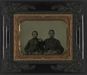 | Keywords: library of congress libraryofcongress dc:identifier=http://hdl.loc.gov/loc.pnp/ppmsca.27546 dc:identifier=httphdllocgovlocpnpppmsca27546 xmlns:dc=http://purl.org/dc/elements/1.1/ xmlns:dc=httppurlorgdcelements11 u.s. civil war uscivilwar american civil war americancivilwar the civil war thecivilwar civil war civilwar war between the states warbetweenthestates united states of america unitedstatesofamerica u.s.a. usa the union theunion union the north thenorth yankee yankees soldier soldiers groupshot people picture frame [Two unidentified soldiers in Union uniforms] [between 1861 and 1865] 1 photograph : half-plate tintype, hand-colored ; 20.5 x 17.6 cm (case) Notes: Title devised by Library staff. Case: Berg, no. 7-10. Gift; Tom Liljenquist; 2010; (DLC/PP-2010:105). Subjects: United States.--Army--People--1860-1870. Soldiers--Union--1860-1870. Military uniforms--Union--1860-1870. United States--History--Civil War, 1861-1865--Military personnel--Union. Format: Group portraits--1860-1870. Portrait photographs--1860-1870. Tintypes--Hand-colored--1860-1870. Rights Info: No known restrictions on publication. Repository: Library of Congress, Prints and Photographs Division, Washington, D.C. 20540 USA, hdl.loc.gov/loc.pnp/pp.print Part Of: Ambrotype/Tintype filing series (Library of Congress) (DLC) 2010650518 Liljenquist Family collection (Library of Congress) (DLC) 2010650519 More information about this collection is available at hdl.loc.gov/loc.pnp/pp.lilj Persistent URL: hdl.loc.gov/loc.pnp/ppmsca.27546 Call Number: AMB/TIN no. 5039 [Two unidentified soldiers in Union uniforms] [between 1861 and 1865] 1 photograph : half-plate tintype, hand-colored ; 20.5 x 17.6 cm (case) Notes: Title devised by Library staff. Case: Berg, no. 7-10. Gift; Tom Liljenquist; 2010; (DLC/PP-2010:105). Subjects: United States.--Army--People--1860-1870. Soldiers--Union--1860-1870. Military uniforms--Union--1860-1870. United States--History--Civil War, 1861-1865--Military personnel--Union. Format: Group portraits--1860-1870. Portrait photographs--1860-1870. Tintypes--Hand-colored--1860-1870. Rights Info: No known restrictions on publication. Repository: Library of Congress, Prints and Photographs Division, Washington, D.C. 20540 USA, hdl.loc.gov/loc.pnp/pp.print Part Of: Ambrotype/Tintype filing series (Library of Congress) (DLC) 2010650518 Liljenquist Family collection (Library of Congress) (DLC) 2010650519 More information about this collection is available at hdl.loc.gov/loc.pnp/pp.lilj Persistent URL: hdl.loc.gov/loc.pnp/ppmsca.27546 Call Number: AMB/TIN no. 5039 |