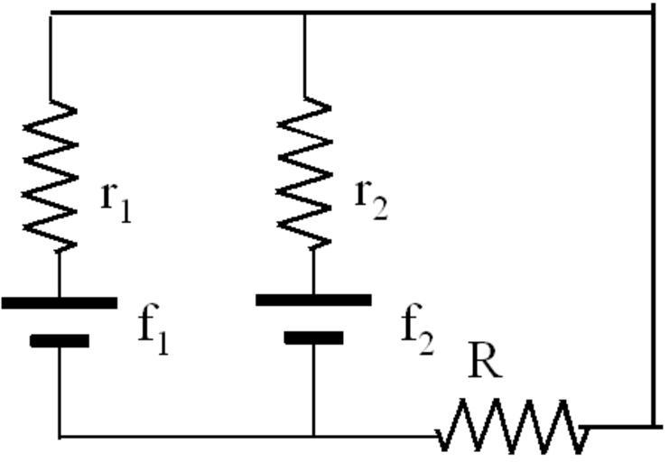 Keywords: TwofemoneR.png Two real dc generator that supply a resistor 2006-05-20 own assumed Pasquale Carelli Electrical schemas Resistor schemas