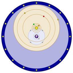 | Keywords: Tychonian system.svg Diagram depicting the basics of the Tychonian geocentric system Basically the objects on blue orbits the Moon and the Sun and the fixed stars revolve around the Earth The objects on orange orbits Mercury Venus Mars Jupiter and Saturn revolve around the Sun All is surrounded by a sphere of fixed stars though they are fixed only with respect to each other for the sphere revolves around the earth The system is essentially geocentric though everything except for the moon and the fixed stars and the earth centre itself revolves around the Sun <br /> Distances are of course just generalized though it is important that the minor planets are always tied to the Sun while the major planets can be on either side of the Earth This is a superior diagram of Tycho's system to most that you will find the path of the sun's orbit intersects with the path of Mars' orbit causing a problem for any astronomer thinking of the mechanism as incorporating nested physical spheres 2009-11-08 own User Fastfission Fastfission <br />If you want to credit someone credit Wikimedia Commons Otherwise don't credit anyone that's fine by me --Fastfission 15 03 14 April 2008 UTC History of astronomy Tycho Brahe |