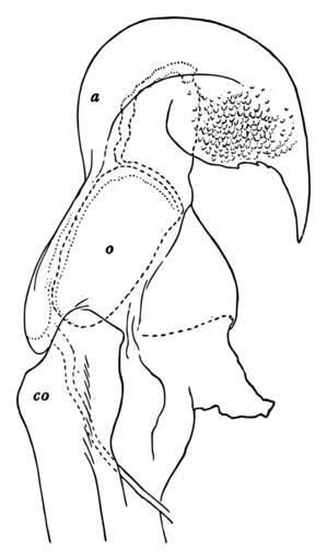 | Keywords: Tylobolus uncigerus posterior gonopod a.svg fr Tylobolus uncigerus Wood ” Gonopode postérieur a télopodite; o ampoule ; co coxoïde en Tylobolus uncigerus Wood ” Posterior gonopod a telopodite; o ampule ; co coxite 1914 Brolemann H W 1914 http //www biodiversitylibrary org/page/32074718 page/9/mode/1up Etude sur les Spribolides Myriapodes Annales de la Société entomologique de France Vol 83 pp 1-38 Henri Wilfred Brolemann 1860 - 1933 other versions PD-old-70-1923 Tylobolus uncigerus Gonopods Uploaded with UploadWizard |