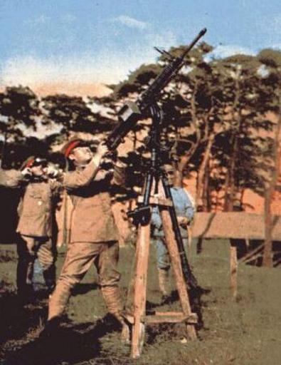 Keywords: Type3hmg.jpg ja 仮設対空銃架に取り付けた三年式機関銃 大正時代の絵葉書より author PD-Japan Type 3 heavy machine gun Anti-aircraft machine guns