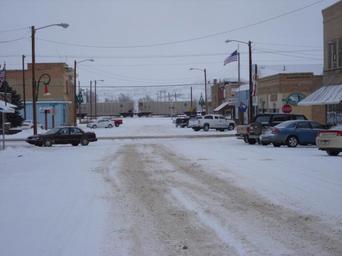 Keywords: Typical.Snowday.Terry.JPG en A view down Logan Avenue in Downtown Terry Montana during a typical snowy day Own TerryAdvocate 2009-01-07 Snowy roads in the United States Terry Montana Trains in snow in the United States