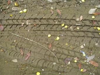 Keywords: tyre tracks tracks marks mud wet ground dirt earth soil brown