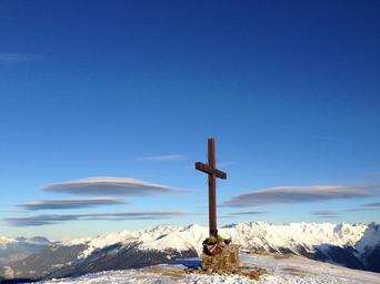 Keywords: tyrol fiss mountain winter cross rest recovery holiday spiritual clouds
