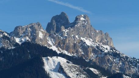 Keywords: tyrol tannheimertal red flüh gimpel winter snow sky blue panorama