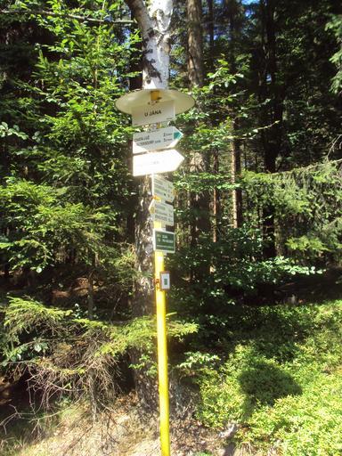 Keywords: U Jána.JPG cs Rozcestník U Jána u silnice k Nové Huti own Zákupák 2013-08-12 Lusatian Mountains Hiking and footpath fingerposts in Česká Lípa District