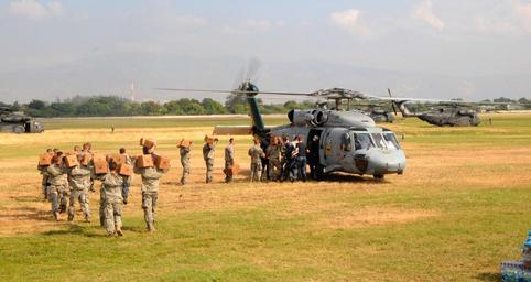 MAKE A MEME View Large Image Army soldiers load water and humanitarian supplies into an MH-60S Sea Hawk helicopter assigned to Helicopter Anti-Submarine Squadron (HS) 11 embarked aboard the aircraft carrier USS Carl Vinson (CVN 70) for 100120-N-XK347-070.jpg en U S ...