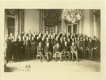 Keywords: france peace u.s. commission to negotiate peace uscommissiontonegotiatepeace monochrome Local Accession Number: 259 Description: The full personnel of the American Commission taken at their headquarters, Hotel Crillon, Paris, just before the signing of peace. In the front row, from left to right, are: Col. E. M. House, Robert Lansing, President Wilson, Henry White, General Tasker H. Bliss. Photographer: Underwood and Underwood Source: Research Library, 20th Century Fox Size: 8x10,8.5x6.5 Medium: Print, Black and White Date:1919 Local Accession Number: 259 Description: The full personnel of the American Commission taken at their headquarters, Hotel Crillon, Paris, just before the signing of peace. In the front row, from left to right, are: Col. E. M. House, Robert Lansing, President Wilson, Henry White, General Tasker H. Bliss. Photographer: Underwood and Underwood Source: Research Library, 20th Century Fox Size: 8x10,8.5x6.5 Medium: Print, Black and White Date:1919