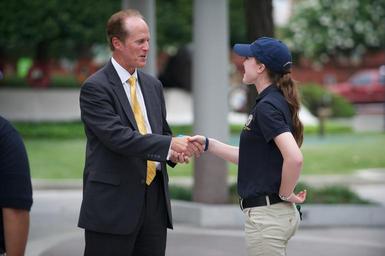 | Keywords: U.S. Marshal shakes hand with Police Explorer.jpg en 2013 Law Enforcement Leadership Academy The U S Marshals Service hosted a large group of Law Enforcement Explorers this week as they toured many of the federal law enforcement agencies in the Washington D C metro area Law Enforcement Exploring provides educational training programs for young adults on the purposes mission and objectives of law enforcement The program provides career orientation experiences leadership opportunities and community service activities The primary goals of the program are to help young adults choose a career path within law enforcement and to challenge them to become responsible citizens of their communities and the nation Agencies from federal state and local levels coordinate the Law Enforcement Exploring programs throughout the United States The majority of the community programs are managed by local police departments including Sheriffs Chiefs of Police and State Police In addition many federal agencies offer their support The Bureau of Alcohol Tobacco Firearms and Explosives ATF Drug Enforcement Administration DEA Federal Bureau of Investigation FBI Federal Law Enforcement Training Center FLETC Federal Air Marshal Service US Army Military Police US Customs and Border Protection Service US Marshals Service US Postal Inspection Service and US Secret Service provide national programs scholarships workshops and literature Also Law Enforcement Exploring is supported by the National Sheriffs ™ Association and the International Association of Chiefs of Police Nationally over 33 000 Explorers and 8 425 adult volunteers participate in Law Enforcement Exploring The program highlights include the National Law Enforcement Exploring Leadership Academies ride-alongs career achievement awards National Law Enforcement Exploring Conferences and scholarship opportunities Photos by Shane T McCoy / US Marshals 2013-07-10 15 06 47 U S Marshals Office of Public Affairs Shane T McCoy other versions PD-USGov Law Enforcement Exploring |