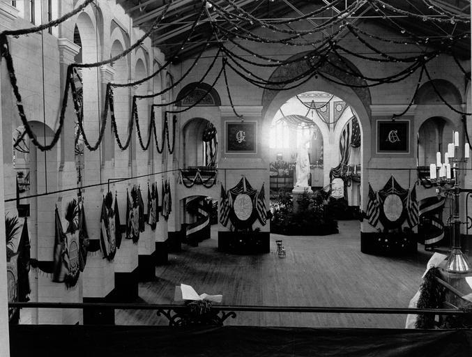 Keywords: smithsonian institution smithsonianinstitution u.s. national museum usnationalmuseum garfield inaugural ball garfieldinauguralball flags march 4, 1881 march41881 president inauguration washington d.c washingtondc smithsonian institution archives smithsonianinstitutionarchives blackandwhite monochrome black and white Description: The East Hall looking toward the Rotunda, with the "Statue of America" in it, of the new United States National Museum, now the Arts and Industries Building, decorated for President James A. Garfield and Chester A. Arthur's Inaugural Ball, March 4, 1881. This was the first event held in the building. Creator/Photographer: Unidentified photographer Medium: Black and white photographic print Dimensions: 8 in x 10 in Date: 1881 Persistent URL: siarchives.si.edu/collections/siris_sic_10274 Repository: Smithsonian Institution Archives Accession number: MAH 66044 Description: The East Hall looking toward the Rotunda, with the "Statue of America" in it, of the new United States National Museum, now the Arts and Industries Building, decorated for President James A. Garfield and Chester A. Arthur's Inaugural Ball, March 4, 1881. This was the first event held in the building. Creator/Photographer: Unidentified photographer Medium: Black and white photographic print Dimensions: 8 in x 10 in Date: 1881 Persistent URL: siarchives.si.edu/collections/siris_sic_10274 Repository: Smithsonian Institution Archives Accession number: MAH 66044 |