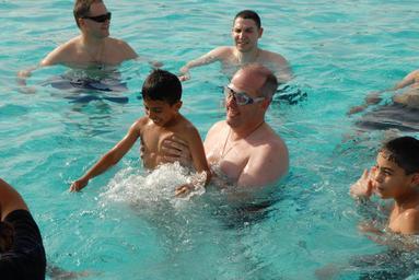 | Keywords: U.S. Navy Lt. Cmdr. Eric Fretz swims with an Iraqi boy scout in the Australian swimming pool during a visit to Camp Victory in Baghdad, Iraq, Oct. 11, 2008 081011-N-YO258-015.jpg en U S Navy Lt Cmdr Eric Fretz swims with an Iraqi boy scout in the Australian swimming pool during a visit to Camp Victory in Baghdad Iraq Oct 11 2008 2008-10-11 MC2 AW James Wagner http //www defenseimagery mil/imageRetrieve action guid 7fa8b9960877629c1eeeab9dccce8fe0d501da68 t 2 Public domain photograph from defenseimagery mil http //www defenseimagery mil/imagery html guid 7fa8b9960877629c1eeeab9dccce8fe0d501da68 081011-N-YO258-015 2008-12-01 Camp Victory PD-USGov-Military-Navy Camp Victory Images from DoD uploaded by Fæ |