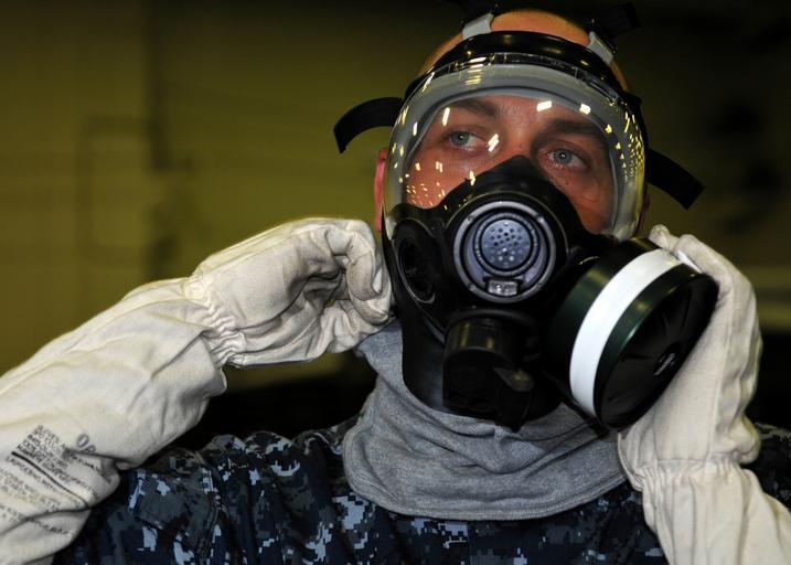 | Keywords: U.S. Navy Yeoman Seaman Michael Barnes, assigned to the administration department, dons a MCU-2P gas mask during a chemical, biological and radiological drill in the hangar bay aboard the aircraft carrier USS 100925-N-IX325-032.jpg en U S Navy Yeoman Seaman Michael Barnes assigned to the administration department dons a MCU-2P gas mask during a chemical biological and radiological drill in the hangar bay aboard the aircraft carrier USS George H W Bush CVN 77 at sea in an undisclosed location Sept 25 2010 2010-09-25 MC3 Tony Curtis http //www defenseimagery mil/imageRetrieve action guid 1300adea6170b09c482103a5b92fd1c89ba83962 t 2 Public domain photograph from defenseimagery mil http //www defenseimagery mil/imagery html guid 1300adea6170b09c482103a5b92fd1c89ba83962 100925-N-IX325-032 2011-01-25 USS George H W Bush CVN 77 PD-USGov-Military-Navy USS George H W Bush CVN-77 MCU-2/P Protective Mask Images from DoD uploaded by Fæ |