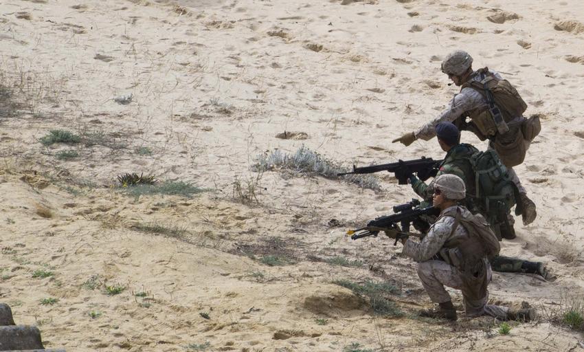 | Keywords: portugal portugal marines portugalmarines u.s. navy usnavy u.s. marines usmarines marine corps marinecorps marines lcac beach assault beachassault trident juncture 15 tridentjuncture15 outdoor 151020-M-WC184-016 PINHEIRO DA CRUZ, PRAIA DA RAPOSA, Portugal – A U.S. Marine with the 26th Marine Expeditionary Unit, from the amphibious transport dock ship USS Arlington (LPD-24) directs Portuguese Marines at Pinheiro Da Cruz, Praia Da Raposa beach in Portugal, while participating in a combined amphibious assault exercise, Oct. 20, 2015, during Trident Juncture 2015. Trident Juncture is a NATO-led exercise designed to certify NATO response forces and develop interoperability among participating NATO and partner nations. Arlington, part of the Kearsarge Amphibious Ready Group, is conducting naval operations in the U.S. 6th Fleet area of operations in support of U.S. national security interests in Europe. (United States Marine Corps photo by Sgt. Austin Long/ Released) 151020-M-WC184-016 PINHEIRO DA CRUZ, PRAIA DA RAPOSA, Portugal – A U.S. Marine with the 26th Marine Expeditionary Unit, from the amphibious transport dock ship USS Arlington (LPD-24) directs Portuguese Marines at Pinheiro Da Cruz, Praia Da Raposa beach in Portugal, while participating in a combined amphibious assault exercise, Oct. 20, 2015, during Trident Juncture 2015. Trident Juncture is a NATO-led exercise designed to certify NATO response forces and develop interoperability among participating NATO and partner nations. Arlington, part of the Kearsarge Amphibious Ready Group, is conducting naval operations in the U.S. 6th Fleet area of operations in support of U.S. national security interests in Europe. (United States Marine Corps photo by Sgt. Austin Long/ Released) |