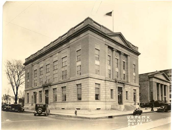 | Keywords: U.S. Post Office and Courthouse (Rock Hill, South Carolina) 1933.jpg 87002523 The U S Post Office and Courthouse in Rock Hill South Carolina in 1933 It served as the Federal Courthouse from 1932 until 1983 National Archives RG 121-BS Box 79 Folder RR Print 1 http //www fjc gov/history/courthouses nsf/getcourthouse OpenAgent chid 4C953BD019C855FF8525718B00727E78 1933-03-06 U S Federal Judicial Center PD-USGov U S Post Office and Courthouse Rock Hill South Carolina Images from the US Federal Judicial Center database |