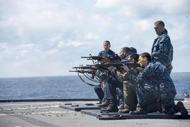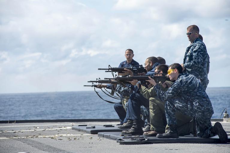 | Keywords: U.S. Sailors assigned to the command ship USS Mount Whitney (LCC 20) participate in an M16A2 rifle qualification in the North Sea June 29, 2014 140629-N-EZ054-117.jpg en U S Sailors assigned to the command ship USS Mount Whitney LCC 20 participate in an M16A2 rifle qualification in the North Sea June 29 2014 2014-06-29 MC3 Luis R Chavez Jr http //www defenseimagery mil/imageRetrieve action guid 4363a18a8568c9e471d600e2385d01329bd60144 t 2 Public domain photograph from defenseimagery mil http //www defenseimagery mil/imagery html guid 4363a18a8568c9e471d600e2385d01329bd60144 140629-N-EZ054-117 2014-07-01 USS Mount Whitney LCC 20 PD-USGov-Military-Navy Males with M16 rifle M16 rifle USS Mount Whitney LCC-20 Images from DoD uploaded by Fæ |
