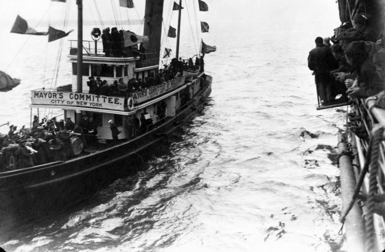 Keywords: blackandwhite monochrome outdoor black and white UA_558_07_12: The Mayor of New York’s Welcoming Ship to the troopships returning to New York after the stop at Ponta Delgada, Azores, following their departure from Europe during World War I. Lorelei Rockwell Collection. Naval History and Heritage Command Photograph. (2016/02/20). UA_558_07_12: The Mayor of New York’s Welcoming Ship to the troopships returning to New York after the stop at Ponta Delgada, Azores, following their departure from Europe during World War I. Lorelei Rockwell Collection. Naval History and Heritage Command Photograph. (2016/02/20). |