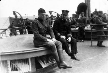 | Keywords: blackandwhite monochrome black and white UA_558_07_14: U.S. Army and Navy Officer sit on deck of USS Sierra (ID-1634) after departing Ponta Delgada, Azores, following their departure from Europe during World War I. Lorelei Rockwell Collection. Naval History and Heritage Command Photograph. (2016/02/20). UA_558_07_14: U.S. Army and Navy Officer sit on deck of USS Sierra (ID-1634) after departing Ponta Delgada, Azores, following their departure from Europe during World War I. Lorelei Rockwell Collection. Naval History and Heritage Command Photograph. (2016/02/20). |