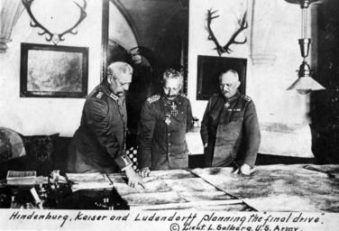 | Keywords: schloss pless schlosspless 1917 blackandwhite monochrome black and white UA_558_07_22: Paul von Hindenburg, Wilhelm II, German Emperor, and Erich Friedrich Wilhelm Ludendorff planning the final drive during World War I. Lorelei Rockwell Collection. Naval History and Heritage Command Photograph. (2016/02/20). UA_558_07_22: Paul von Hindenburg, Wilhelm II, German Emperor, and Erich Friedrich Wilhelm Ludendorff planning the final drive during World War I. Lorelei Rockwell Collection. Naval History and Heritage Command Photograph. (2016/02/20). |