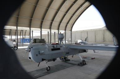 | Keywords: UAV MQ-5B Hunter launch and recovery at Kandahar Airfield 150806-N-SQ656-801.jpg en KANDAHAR AIRFIELD Afghanistan Aug 6 2015 A MQ-5B Hunter stands ready in a Task Force Copperhead Tactical Unmanned Aerial Vehicle Detachment hangar at Kandahar Airfield The MQ-5B is a multi-mission UAV equipped with miniature synthetic aperture radar or Copperhead system to detect improvised explosive devices with great success in Afghanistan for coalition and Afghan Security Forces U S Navy photo by Lt Kristine Volk/Released <br>Unit Resolute Support Headquarters 2015-08-06 Lt Kristine Volk https //www dvidshub net/image/2133626/uav-mq-5b-hunter-launch-and-recovery-kandahar-airfield 150806-N-SQ656-801 2015-08-20 16 10 KANDAHAR AF PD-USGov-Military-Navy Kandahar International Airport Images from DoD uploaded by Fæ |