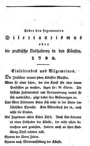 Keywords: Über den Dilettantismus 1833.jpg de Erste Seite der fragmentarischen Schrift à ber den sogenannten Dilettantismus oder die praktische Liebhaberey in den Künsten von Eckermann nach Aufzeichnungen von Goethe und Schiller Johann Wolfgang von Goethe à ber den sogenannten Dilettantismus oder die praktische Liebhaberey in den Künsten In Goethes Werke Vollständige Ausgabe letzter Hand 44 Band Goethes nachgelassene Werke Cotta Stuttgart und Tübingen 1833 S 256 Cotta 1833 PD-old Literary works by Johann Wolfgang von Goethe Works by Friedrich Schiller |
