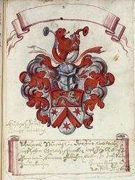 | Keywords: UBHD Cod Sal IX 58 133r Sturmlin.jpg Wappen aus dem Wappenbuch des Hofpfalzgrafen Franz Rasso Gotthardt Entstanden in Süddeutschland Passau Universitätsbibliothek Heidelberg Cod Sal IX 58 <br />Wappen http //digi ub uni-heidelberg de/diglit/salIX58 after 1597 1623 “1631 Franz Rasso Gotthardt PD-old-100 Wappenbuch der Hofpfalzgrafen Coats of arms of families of Germany - S Sturmlin Argent a chevron gules 3 six rays gules in heraldry Gules a lion argent Lions rampant in crest Bull horns in crest Argent and gules in heraldry Party per fess shields |