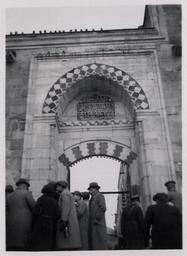 | Keywords: üç şerefeli mosque üçşerefelimosque üç şerefeli camii üçşerefelicamii sultan ii. murad sultaniimurad murad ii muradii ottoman architecture ottomanarchitecture osmanlı mimarisi osmanlımimarisi cami minare mosque minaret mimari architecture edirne salt araştırma saltaraştırma salt research saltresearch salt online saltonline arch blackandwhite black and white “1438-1447 yılları arasında Sultan II. Murad tarafından yaptırılan cami, Osmanlı mimarlığında erken dönemle klasik dönem arasında yer almaktaydı. Türk sanatında ilk kez ortaya çıkan plan şeması ile enine gelişen bir mekân anlayışında inşa edildi. Dört minaresinin biri üç, biri iki, ikisi ise birer şerefeli olup, baklavalı, şişhaneli, çubuklu ve burmalı motif üslupları ile bezendi. Üç şerefeli minaresindeki her üç şerefeye ayrı merdivenlerden çıkılan ilk minare tarzıdır ve bu tarz camiye adını vermiştir. Hafif sivri kemerli revakları ile şadırvanlı avlusu vardır.” Kaynak: Engin Özendes, “Osmanlı’nın İkinci Başkenti Edirne”, Yapı-Endüstri Merkezi (YEM) Yayınları, 1999, s. 20 Şadırvan avlusunun batı girişi SALT Araştırma - Ali Saim Ülgen Arşivi “1438-1447 yılları arasında Sultan II. Murad tarafından yaptırılan cami, Osmanlı mimarlığında erken dönemle klasik dönem arasında yer almaktaydı. Türk sanatında ilk kez ortaya çıkan plan şeması ile enine gelişen bir mekân anlayışında inşa edildi. Dört minaresinin biri üç, biri iki, ikisi ise birer şerefeli olup, baklavalı, şişhaneli, çubuklu ve burmalı motif üslupları ile bezendi. Üç şerefeli minaresindeki her üç şerefeye ayrı merdivenlerden çıkılan ilk minare tarzıdır ve bu tarz camiye adını vermiştir. Hafif sivri kemerli revakları ile şadırvanlı avlusu vardır.” Kaynak: Engin Özendes, “Osmanlı’nın İkinci Başkenti Edirne”, Yapı-Endüstri Merkezi (YEM) Yayınları, 1999, s. 20 Şadırvan avlusunun batı girişi SALT Araştırma - Ali Saim Ülgen Arşivi |