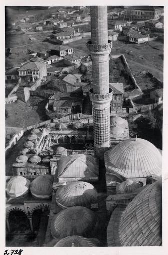 Keywords: üç şerefeli mosque üçşerefelimosque üç şerefeli camii üçşerefelicamii sultan ii. murad sultaniimurad murad ii muradii ottoman architecture ottomanarchitecture osmanlı mimarisi osmanlımimarisi cami minare mosque minaret mimari architecture edirne salt araştırma saltaraştırma salt research saltresearch salt online saltonline photo border “1438-1447 yılları arasında Sultan II. Murad tarafından yaptırılan cami, Osmanlı mimarlığında erken dönemle klasik dönem arasında yer almaktaydı. Türk sanatında ilk kez ortaya çıkan plan şeması ile enine gelişen bir mekân anlayışında inşa edildi. Dört minaresinin biri üç, biri iki, ikisi ise birer şerefeli olup, baklavalı, şişhaneli, çubuklu ve burmalı motif üslupları ile bezendi. Üç şerefeli minaresindeki her üç şerefeye ayrı merdivenlerden çıkılan ilk minare tarzıdır ve bu tarz camiye adını vermiştir. Hafif sivri kemerli revakları ile şadırvanlı avlusu vardır.” Kaynak: Engin Özendes, “Osmanlı’nın İkinci Başkenti Edirne”, Yapı-Endüstri Merkezi (YEM) Yayınları, 1999, s. 20 Edirne Üç Şerefeli Camii minaresi SALT Araştırma - Ali Saim Ülgen Arşivi “1438-1447 yılları arasında Sultan II. Murad tarafından yaptırılan cami, Osmanlı mimarlığında erken dönemle klasik dönem arasında yer almaktaydı. Türk sanatında ilk kez ortaya çıkan plan şeması ile enine gelişen bir mekân anlayışında inşa edildi. Dört minaresinin biri üç, biri iki, ikisi ise birer şerefeli olup, baklavalı, şişhaneli, çubuklu ve burmalı motif üslupları ile bezendi. Üç şerefeli minaresindeki her üç şerefeye ayrı merdivenlerden çıkılan ilk minare tarzıdır ve bu tarz camiye adını vermiştir. Hafif sivri kemerli revakları ile şadırvanlı avlusu vardır.” Kaynak: Engin Özendes, “Osmanlı’nın İkinci Başkenti Edirne”, Yapı-Endüstri Merkezi (YEM) Yayınları, 1999, s. 20 Edirne Üç Şerefeli Camii minaresi SALT Araştırma - Ali Saim Ülgen Arşivi