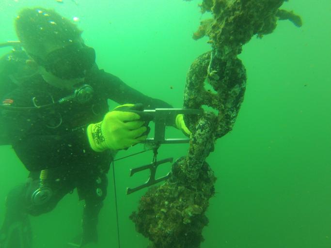 | Keywords: UCT-2 deep water mooring inspection 130926-N-ZZ999-001.jpg en Builder 2nd Class Matthew Dawson from Chicago assigned to Underwater Construction Team 2 inspecting a fleet mooring riser chain for wear with specialized equipment at Joint Base Pearl Harbor-Hickam Hawaii Seabee Divers from UCT 2's Construction Dive Detachment Bravo are at JBPHH inspecting and repairing more than 100 fleet mooring buoys during their second of three stops across the Pacific during their six-month deployment 2013-09-25 Photo by Steel Worker 2nd Class Metro Sayre https //www dvidshub net/image/1027022 130926-N-ZZ999-001 2013-09-27 19 25 PEARL HARBOR HI US PD-USGov-Military-Navy 2013 in Pearl Harbor People at Joint Base Pearl Harbor-Hickam Underwater photographs of scuba divers Images from DoD uploaded by Fæ |