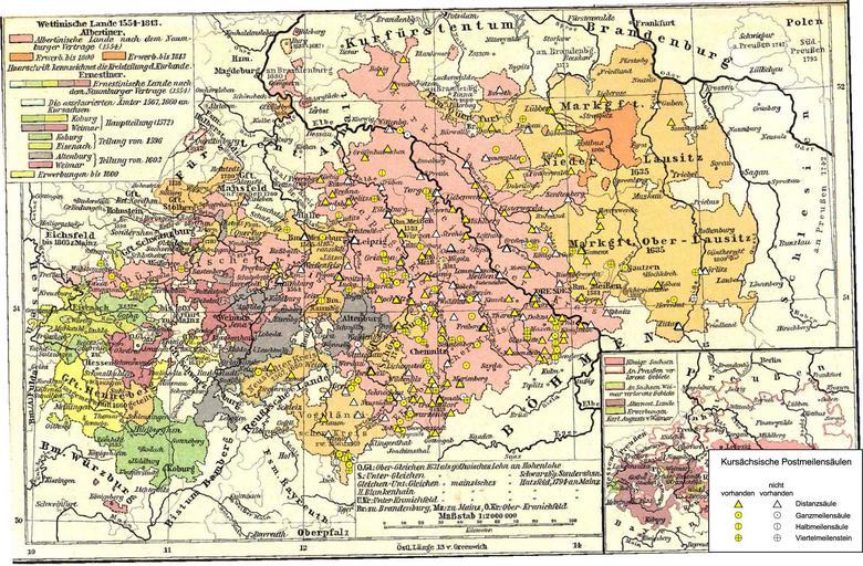 | Keywords: Uebersicht Postmeilensaeulen.jpg à bersichtskarte der Kursächsischen Postmeilensäulen selbst erstellt; basiert auf de Bild Kurkreis jpg Karte der sächsischen Kreise Aus dem historischen Schulatlas 44 Ausgabe 1925 erschienen im Verlag Velhagen Klasing herausgegeben von Alfred Balsamus Ernst Schwabe und Ernst Ambrosius Hochgeladen am 19 Oktober 2005 von Torsten Schleese Laut Bildtext Torsten Schleese žpublic domain 2006-08-08 Peer-Cedric Hänsel elsaxo PD-old Uebersicht Postmeilensaeulen svg Old maps of the Holy Roman Empire Old maps of Saxony |