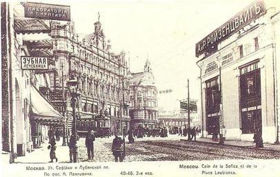 | Keywords: Ugol sofijki i lubjanskoj ploshadi.jpg Угол Софийки Пушечной ул и и Лубянской площади Angle of Sofiyka Pushechnaya Street and Lubyanka Square http //turizm lib ru/n/nowak_a_w/varvarka shtml с 1900 Author PD-RusEmpire Historical images of Lubyanka Square Pushechnaya Street PD-Old |