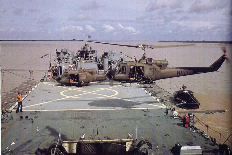 | Keywords: UH-1E HAL-4 LST-821 Oct1967.jpg A Bell UH-1E Huey helicopter of U S Navy light helicopter attack squadron HAL-3 Seawolves landing on the converted tank landing ship USS Harnett County LST-821 between combat operations in the Mekong Delta Co Chien river South Vietnam in October 1967 A U S Army UH-1B is parked in the background Scan from Dana Bell Air War over Vietnam Volume IV Arms and Armour Press London Harrisburg PA 1984 ISBN 0853686351 p 36 Cites U S Navy as source 1967-10 USN PD-USGov Bell UH-1 Iroquois in the Vietnam War United States Army aviation in the Vietnam War United States Navy in the Vietnam War LST-821 Harnett County ship 1944 Helicopter Attack Squadron Light 3 United States Navy |