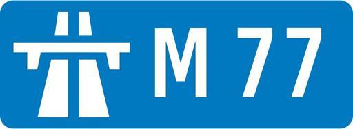 Keywords: UK-Motorway-M77.svg Motorway badge for the M77 motorway Own 2007-05-06 User Max Naylor British motorway plaques M77 motorway 77 number
