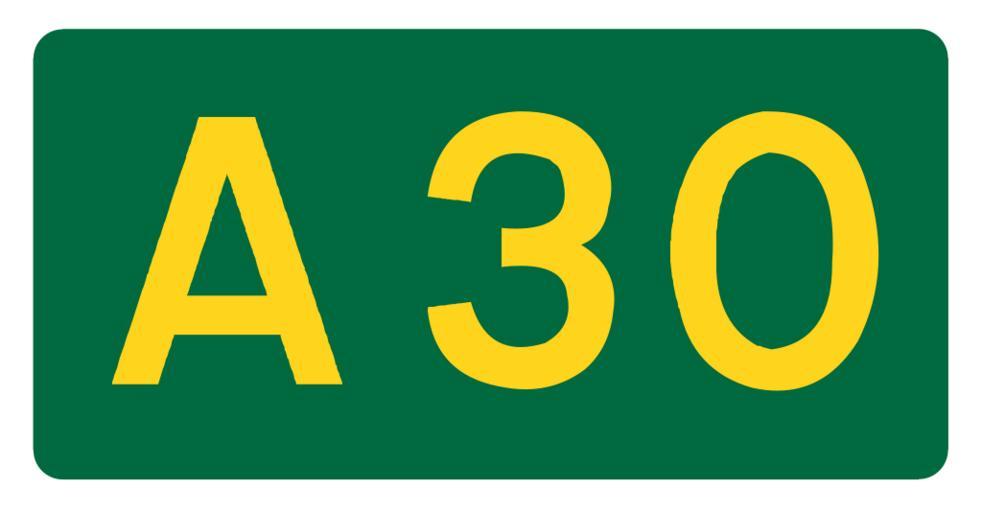 Keywords: UK road A30.svg en A30 own Mauls date Diagrams of route signs of the United Kingdom 30 number