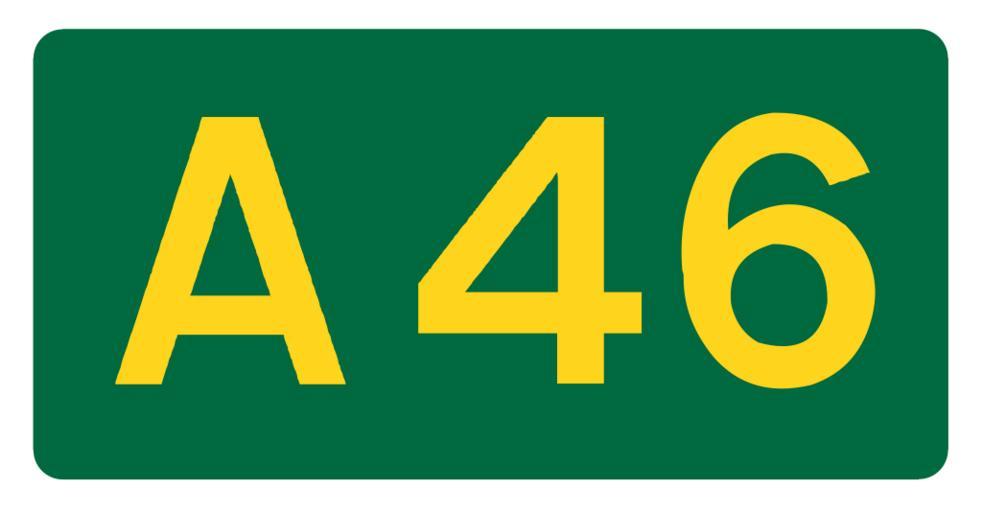 Keywords: UK road A46.svg en UK road number patch own Mauls Diagrams of route signs of the United Kingdom 46 number A46 road England