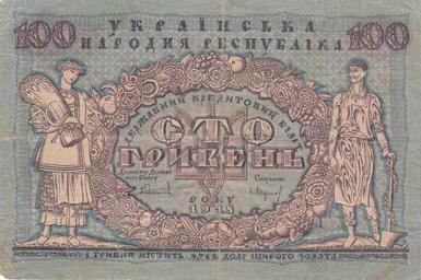 | Keywords: Ukrainian 100 hryvnia's note of the People's repub.jlic of Ukraine (1918) front side.jpg Ukrainian People's Republic which existed 1918 “1921 Scanned bank note of the Ukrainian People's Republic 1918 Creator Heorhiy Narbut 1918 <gallery> File Ukrainian 100 hryvnia's note of the People's republic of Ukraine 1918 back side jpg Reverse </gallery> PD-UA-exempt banknotes PD-old-auto-1923 1920 Banknotes of Ukraine 1918 0100 Banknotes by Heorhiy Narbut Blue banknotes Money of Ukrainian People's Republic Banknotes with a face value of 100 |