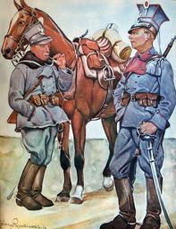 | Keywords: Ułani Legionów Polskich 1914-1917, akwarela A. Nałęcz-Korzeniowskiego i J. Ryszkiewicza (syn).jpg pl Ułani Legionów Polskich 1914-1917 akwarela A Nałęcz-Korzeniowskiego i J Ryszkiewicza syn Od lewej ułan II Brygady Legionów Polskich Karpackiej ułan I Brygady Legionów Polskich Beliniak before 1931 http //zbrojownia cbw pl 8080/dlibra/docmetadata id 3561 from dirids 1 ver_id lp 5 QI Wacław Lipiński Eugeniusz Quirini Album Legjonów Polskich Wydawca Główna Księgarnia Wojskowa Warszawa 1933; s 248 http //legionisci kc-cieszyn pl/index php/content 604/ legionisci kc-cieszyn pl Józef Ryszkiewicz ps Świrysz 1888-1942 Andrzej Nałęcz-Korzeniowski 1892-1931 other versions Custom license marker 2015 02 18 PD-Art PD-old-auto 1942 Poland Uploaded with UploadWizard Uniforms of the Polish Legions in World War I Czapka 1st Uhlan Regiment of Polish Legions 1914-1918 2nd Uhlan Regiment of Polish Legions 1914-1918 Andrzej Nałęcz-Korzeniowski |