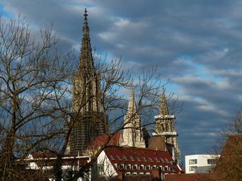 Keywords: ulm cathedral münster ulm building church city dom cathedral architecture high steeple clouds sky covered impressive light