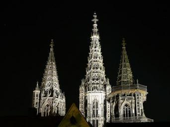 Keywords: ulm cathedral night photograph spires towers illuminated hell münster architecture dom building steeple tower spire church ulm