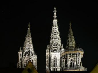 Keywords: ulm cathedral night photograph spires towers illuminated hell münster architecture dom building steeple tower spire church ulm
