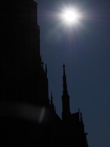 Keywords: ulm cathedral solar eclipse münster ulm building sun sunshine sonnenstern light shadow observation darkness blackout natural spectacle sky event celestial phenomenon natural phenomenon of partial sky