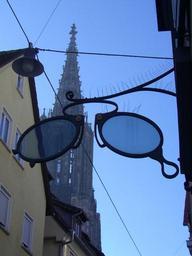 Keywords: ulm cathedral through the lens building church münster architecture steeple main tower gothic glasses by looking sky blue ulm highest church tower tower
