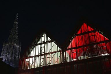 Keywords: ulm ulm cathedral münster church steeple building architecture sky red night photograph darkness home housewife artist guild